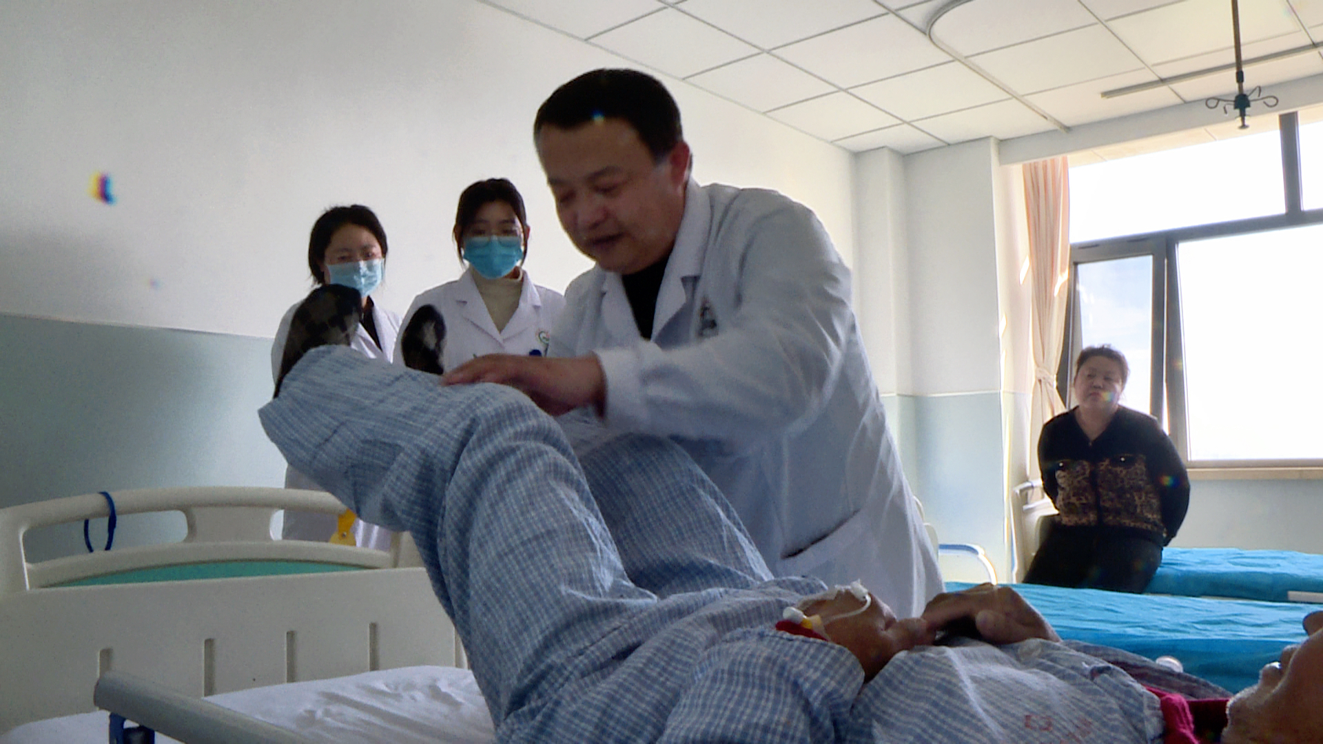 在神经内科病房内,主任王会来正带着医疗团队逐一查房。他俯身在病床前,仔细询问老年患者的饮食情况,对照病历细致调整用药剂量。病房里没有喧闹的团圆饭,却有医护人员无微不至的叮嘱,让留院患者倍感安心。